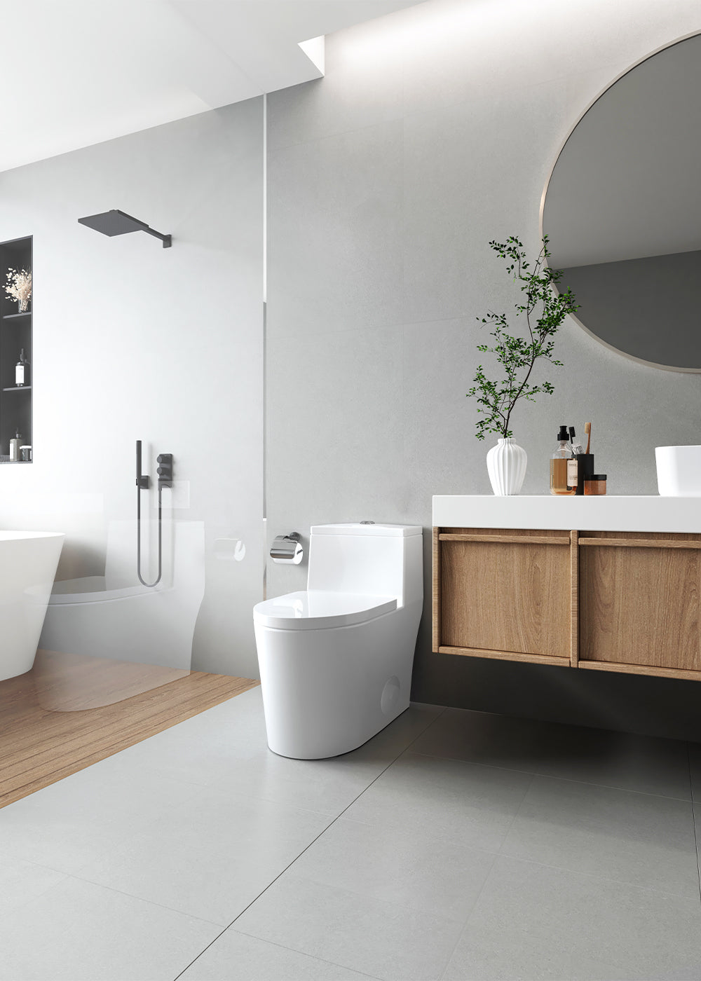 SOTOMO one piece toilet seamlessly blend the tank and bowl, creating a sleek and effortlessly clean design that brings a touch of modern elegance to your powder room and bathroom.