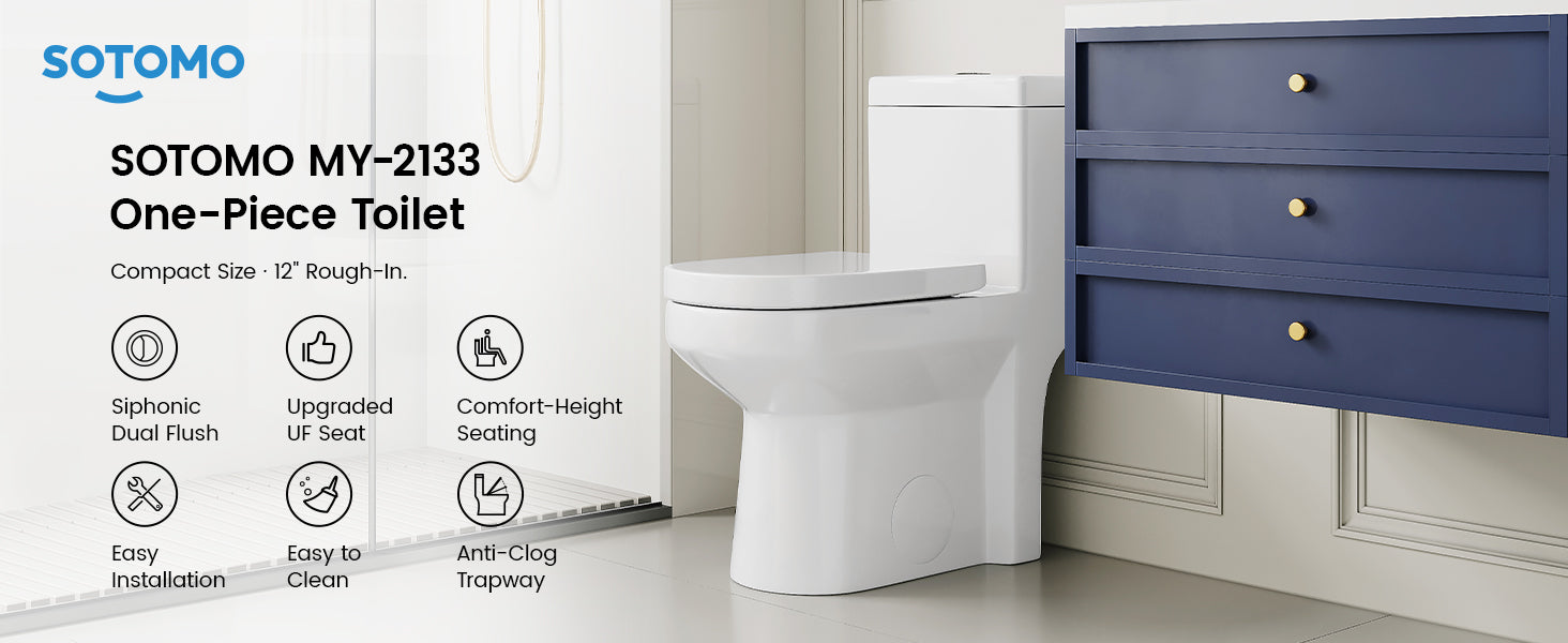 SOTOMO MY-2133 Small Compact One Piece Toilet is a perfect choice for modern bathrooms and small spaces. This toilet is specifically designed for small bathrooms, making the most of limited space.