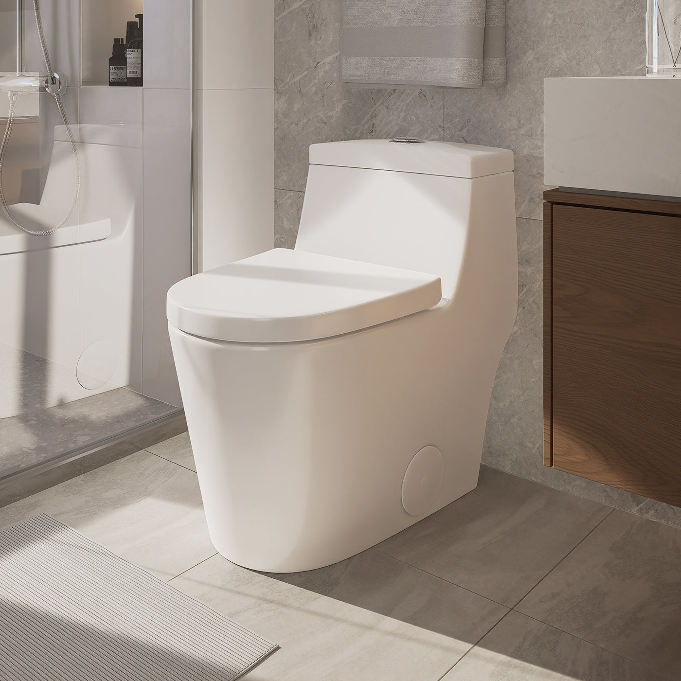 SOTOMO MJ-80 one piece toilet seamlessly blend the tank and bowl, creating a sleek and effortlessly clean design that brings a touch of modern elegance to your powder room and bathroom. Versatile enough to complement any decor style, these toilets redefine both form and function.
